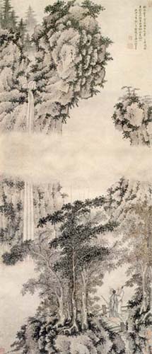 明 沈贞《秋林观瀑图》