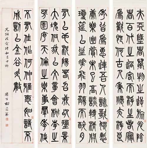 杨沂孙(1812或181——1881),清代书法家。字子舆,一作子与,号泳春,晚号濠叟,江苏常熟人。道光二十三年(一八四三)举人,官至凤阳知府。工钟鼎、石鼓、篆、隶与邓石如颉颃。气魄不及,而丰神过之。偶刻印,亦彬雅迈伦。著印印。卒年七十。工篆书,融会大、小篆。篆法精纯,学力深厚。自唐李阳冰之后,无能有继承者,孙氏以篆书著称于世,行书较罕见,但也写得很好。邓石如、杨沂孙以其独特风格的篆书方法,令人一新耳目,使这种已失去实用价值的文字以其独特的美感,在书法艺术园地中重放光彩,其功不可泯。马宗霍《霋岳楼笔谈》评其篆书:“濠叟篆书,功力甚勤,规矩并备,所乏者韵耳。”传世书迹较多。《赠少卿尊兄七言联》,纸本墨迹,行书。七言联1则。凡上联下联正文14字,款10字,刊于日本《明清书道图说》。此行书联,以颜、柳之楷为体,又取各家之长,使圆浑之劲,用藏锋之功,寓巧于拙,借古于今,创造出自家的风格。由于他书法的功力深厚,字迹笔划劲利,布局法度谨严,且有疏朗开阔、遒婉俊逸的华采。这是杨氏此作的主要特点。此联中的小字落款,也十分得体,笔势流畅、洒脱,字的大小与整幅字配合得很是协调,给整个作品增添了活跃的气氛。